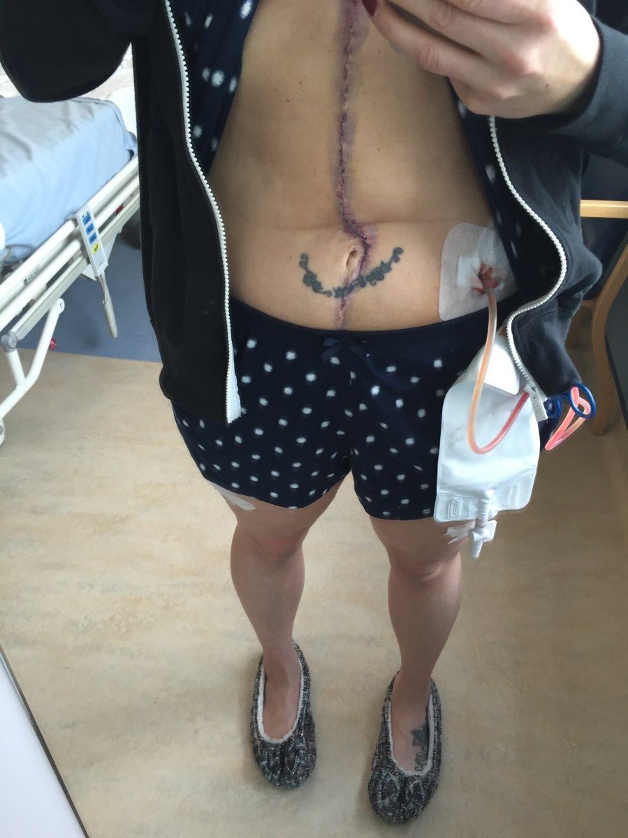 image Published Feb 1, 2016 at 2448 × 3264 Scar, pancreatic drain and plasters on my legs from blood thining jabs…ouch
